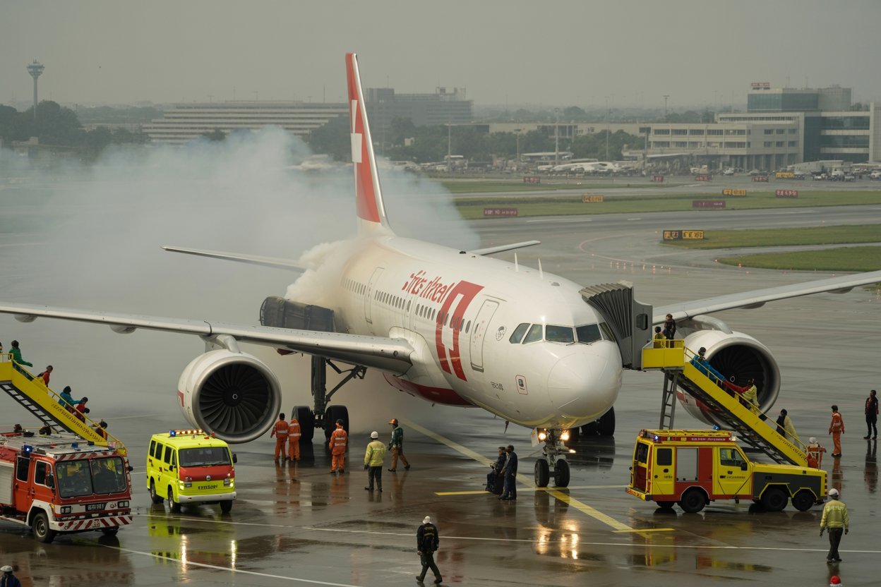 दिल्ली एयरपोर्ट पर बड़ा विमान हादसा टला: स्विस एयर की फ्लाइट के इंजन में आग, 232 यात्री सुरक्षित बाहर निकाले गए